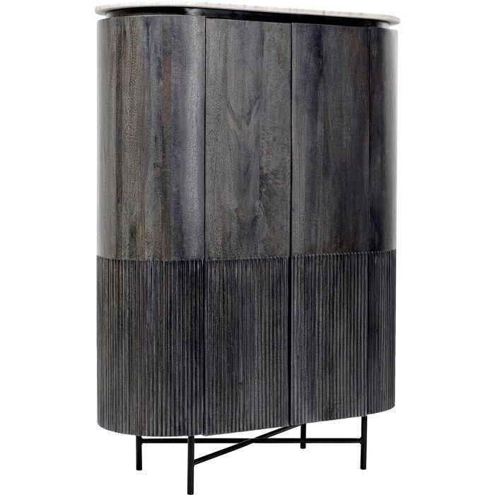 Classy and special - this tall cupboard offers more. The shape: a flat oval, the storage surface made of light, genuine marble and a body that stands out among living room cupboards with its dark grey fronts and sides made of solid wood with a corrugated look. Glenn radiates discreet noblesse and timeless elegance and impresses with its precious materials and range of uses.