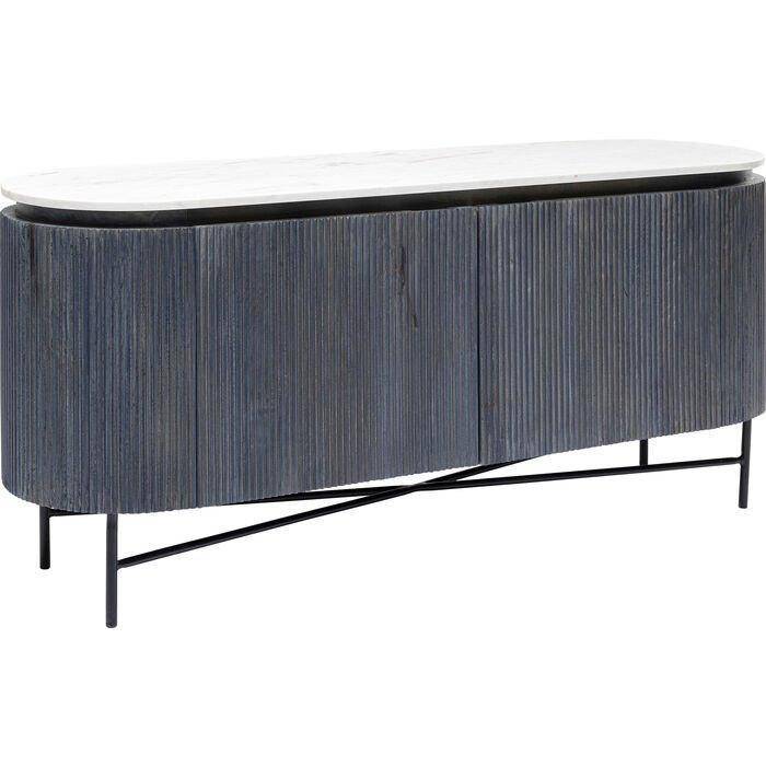 Classy and special - this sideboard offers more. The shape: a flat oval, the storage surface made of light, genuine marble and a body that stands out among sideboards with its dark grey fronts and sides made of solid wood with a corrugated look. Glenn radiates discreet noblesse and timeless elegance and impresses with its precious materials.