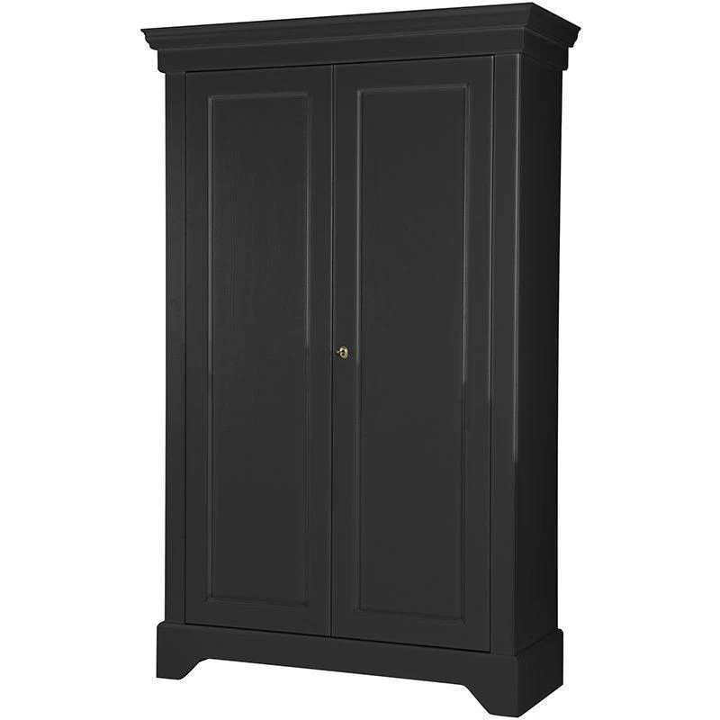 Isabel is a timeless, classic cupboard from the collection of the brand WOOOD. The cupboard is made of pine and has a tough finish. The inside of the cabinet is decorated with 4 wide shelves. The two doors in the cabinet have a lock and key. The combination of classic elements with a tough black finish, white or concrete grey makes this Isabel cupboard ideal for multiple interior styles.