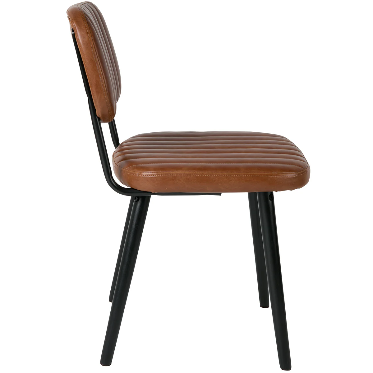 With its four slightly sloping legs, basic seat and small straight backrest, the Jake Worn black or brown chair is an authentic and traditional model. Its quilted texture filled with vertical stripes gives it a retro look. In addition, its solid oak wood legs have been covered with a black lacquer that blends perfectly with the dark colour of this chair.
