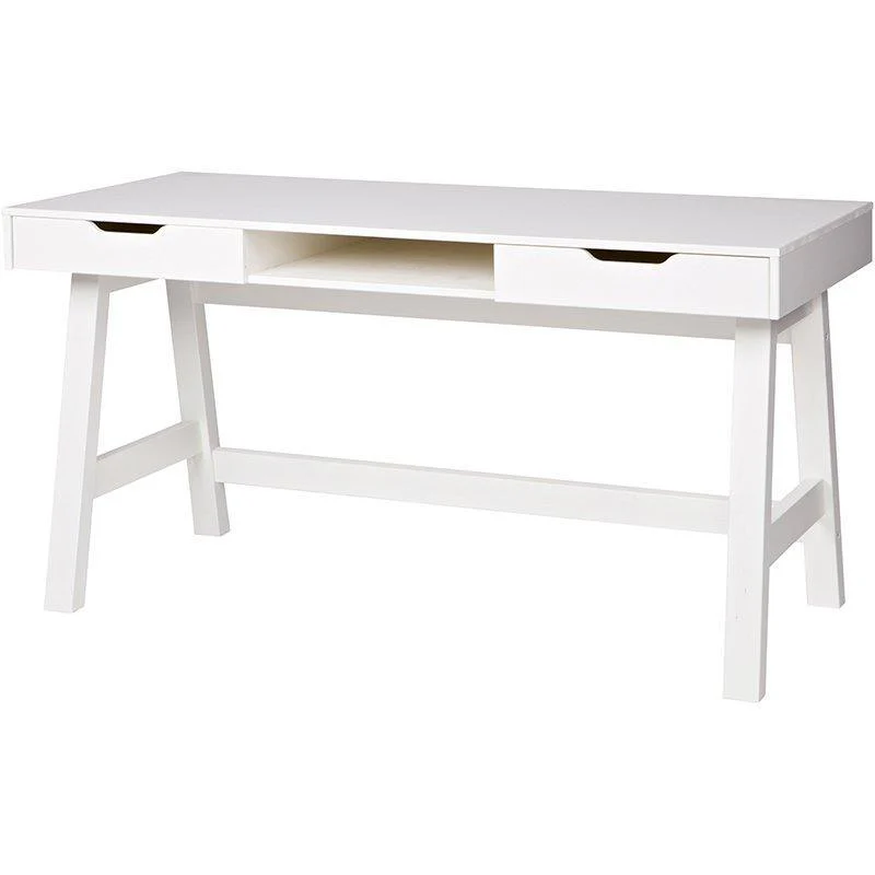 Desk Nikki is part of the Nikki bedroom series of the brand WOOD. Create the perfect bedroom with this series Nikki. The Nikki desk has 2 practical drawers with a metal drawer guide and an open compartment in the middle. The desk is made of solid pine, lacquered in white and has a brushed finish. When brushing pine furniture, the vein is strongly accentuated and an aged surface is created.