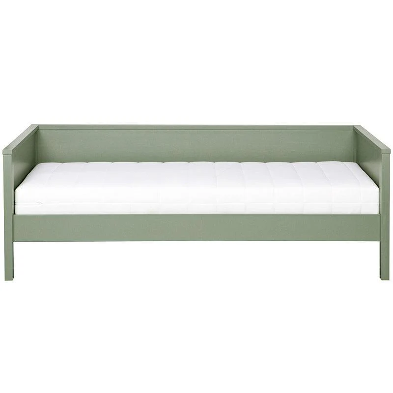 WOOOD sofa bed Nikki is part of the bedroom series Nikki. Create the perfect bedroom with the Nikki series. Bedbank Nikki is perfect for teenagers who spend a lot of time in their rooms. The bed is made from solid, FSC certified, pinewood lacquered in the colour jade green and has a brushed finish. When pine furniture is brushed, the grain is strongly accentuated and a lived-in surface is created.
