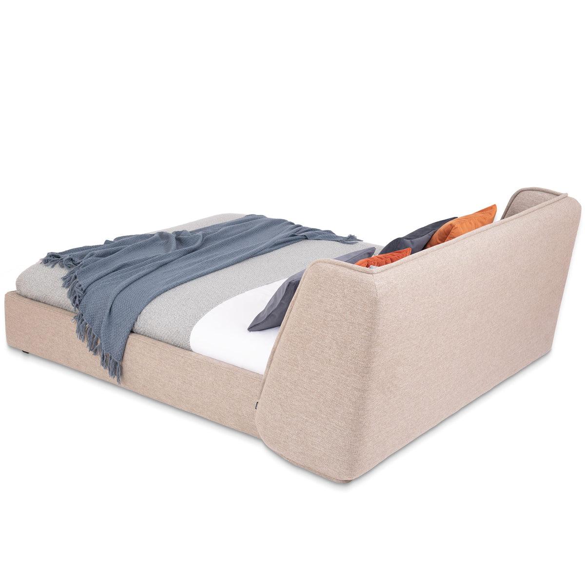 The upholstered Pyora bed will add cosiness and elegance to your bedroom. The bed has a unique headboard with precisely made trimming. It pleases the eye and provides relaxation during sleep. The model has a container for bedding, which provides additional storage space.
