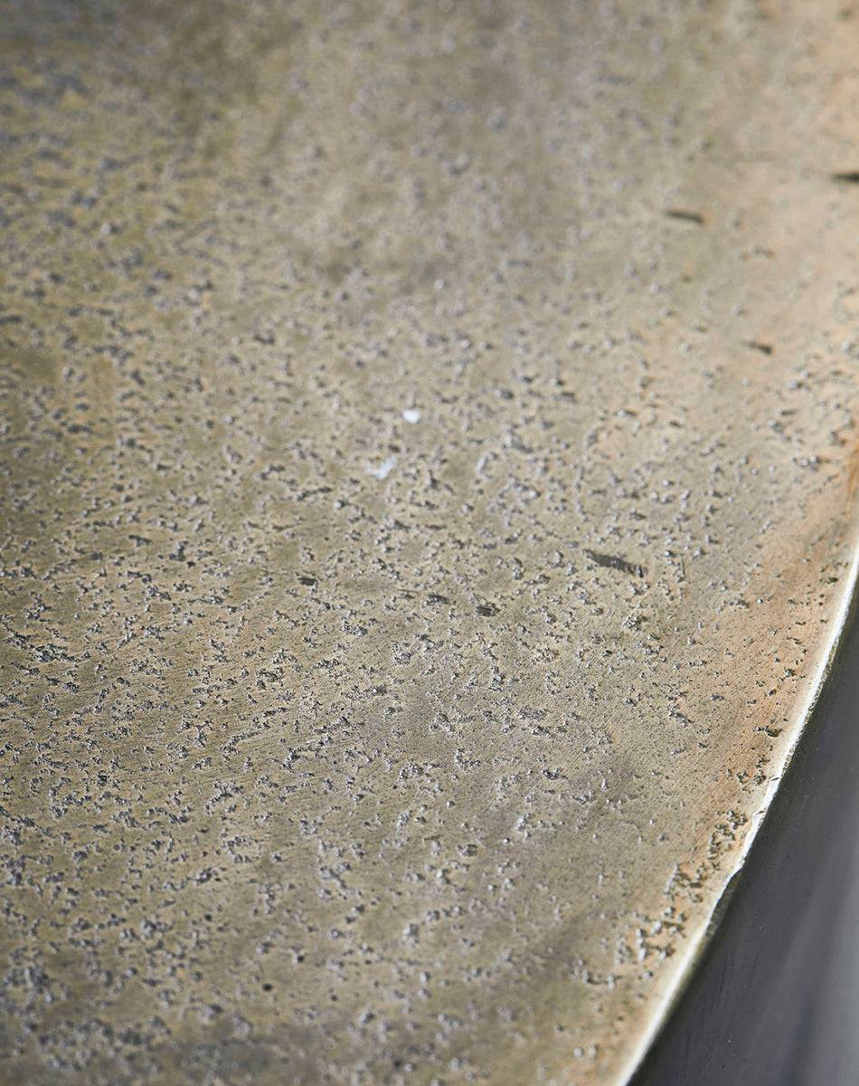 When it is time to upgrade your sofa arrangement, Rota is ready. The aluminium coffee table is designed by House Doctor and is finished with a fine, golden shade. A timeless design that elevates the overall look of your living room. And doing so with a sense of understated elegance, thanks to the surface with its deliberate imperfections. Frame the coffee table with a rug underneath and personalise it with your favourite décor such as a glass vase.